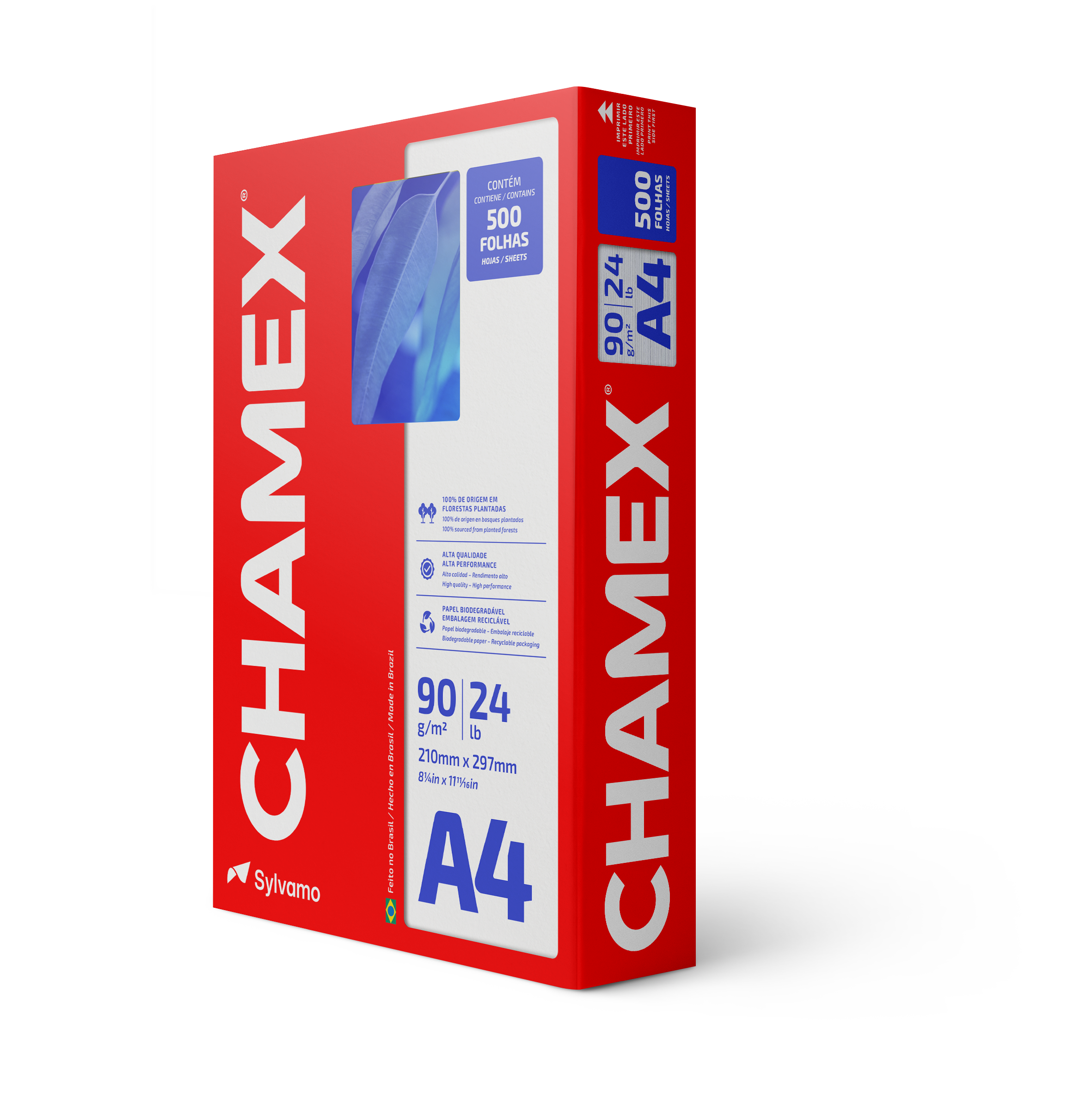 Chamex A4 75g garante ótima performance em todo tipo de atividade, como criar, escrever, imprimir e reproduzir. Com superfície resistente, corte perfeito e equilibrada absorção, permite melhor deslizamento do papel na impressora e evita desperdício de tinta. É produzido a partir do cultivo de eucalipto 100% renovável e as fibras são tratadas para obter o mais elevado grau de brancura.